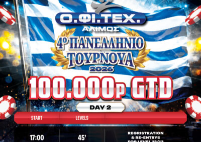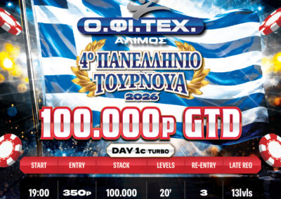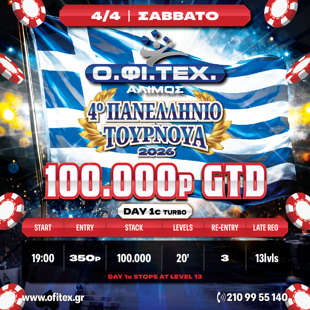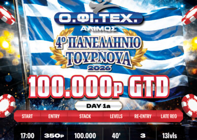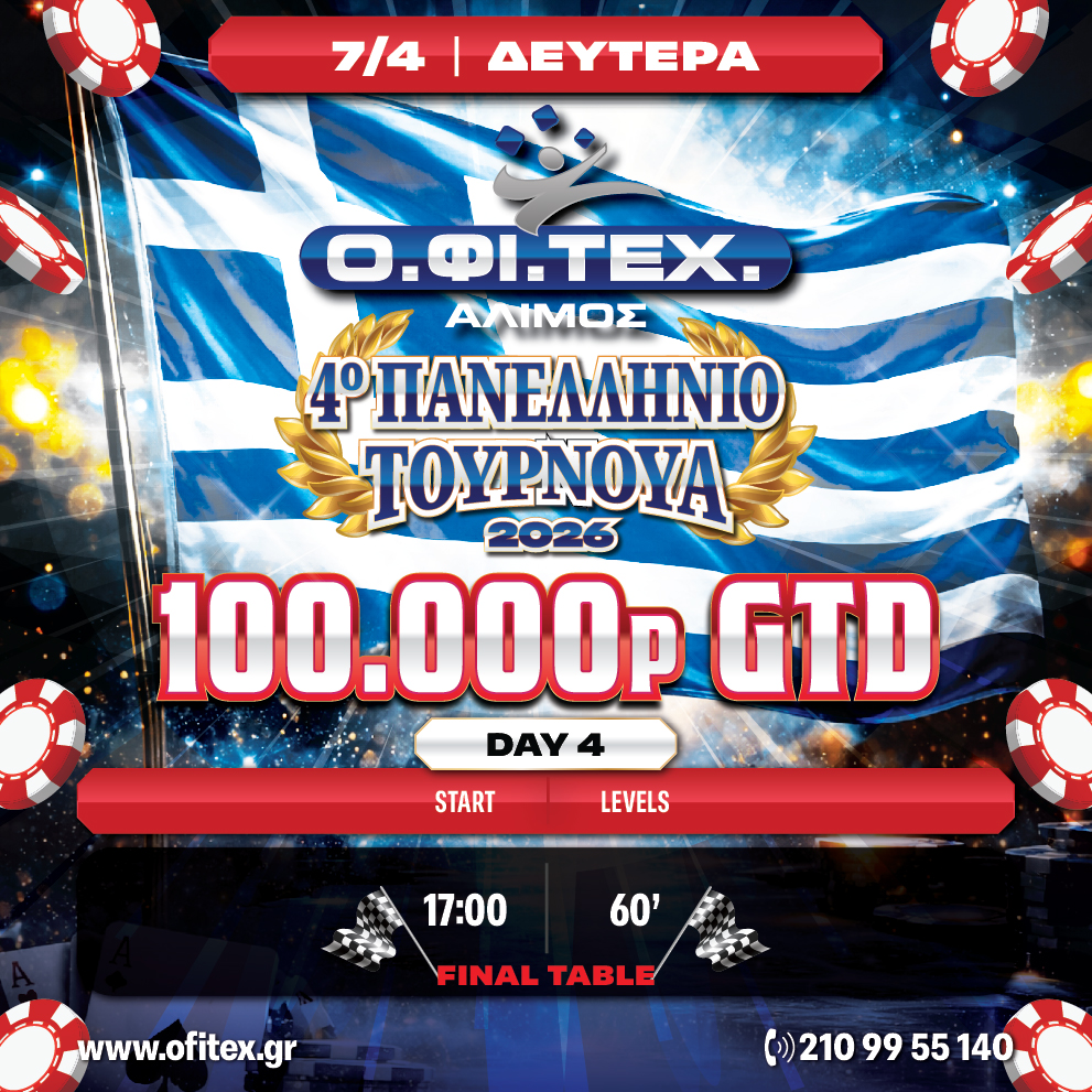 Six days filled with intensity, high-level strategy, crucial decisions and unforgettable moments. The 4th Panhellenic Tournament returns stronger than ever, featuring a massive 100.000p GTD prizepool and a Final Table destined to deliver pure action.