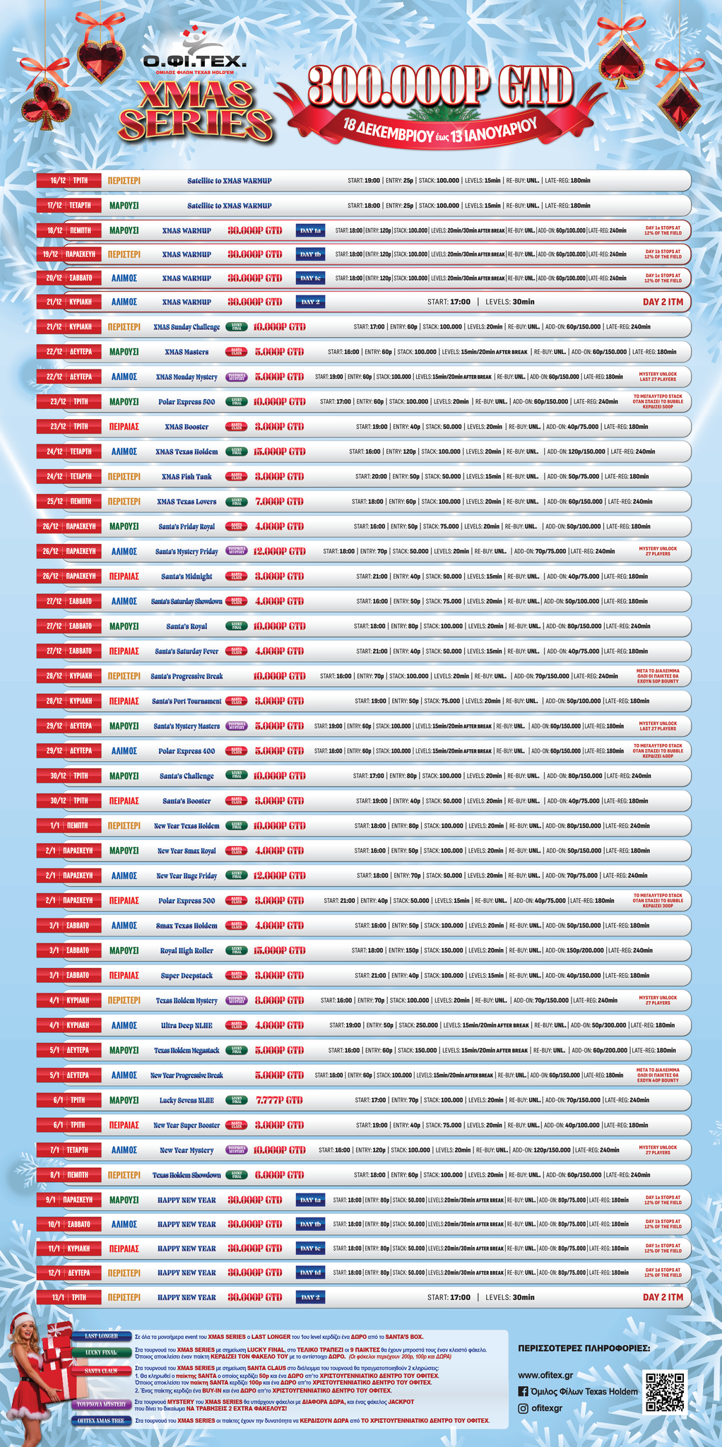 The most festive days come with Premium Events, extra Christmas gifts, big stacks, deep structures, extended late registration and GTDs that create the ultimate holiday vibe.